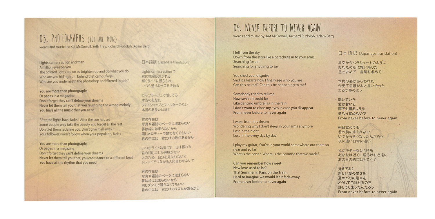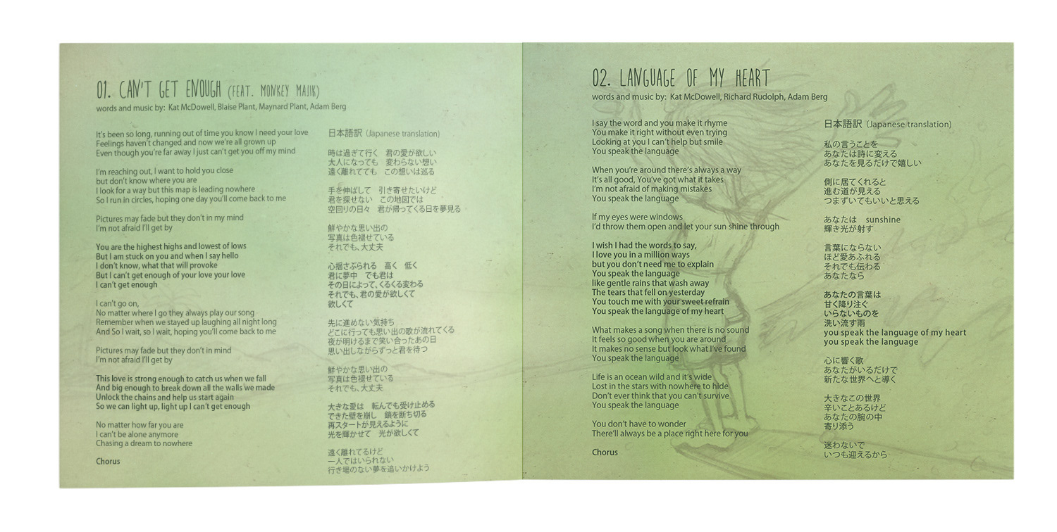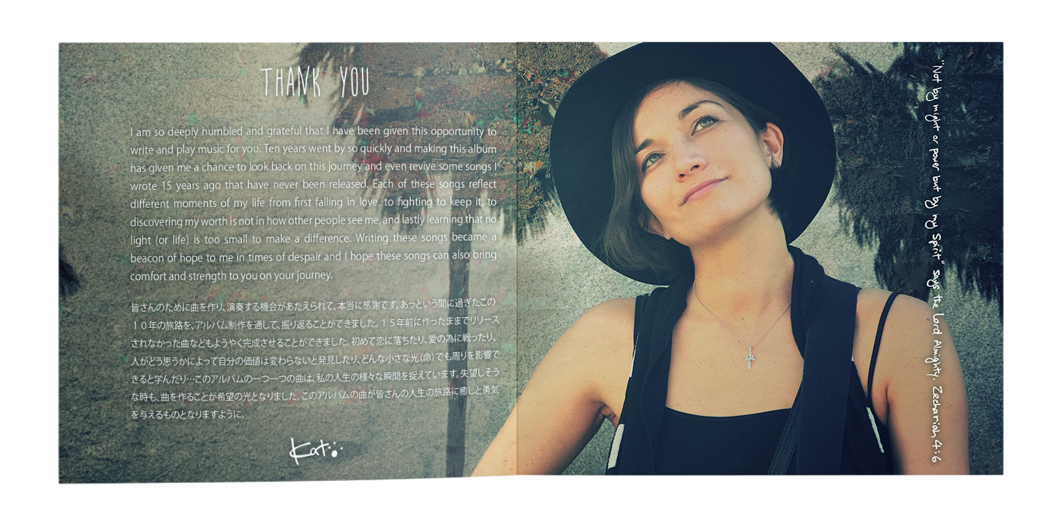 CD cover design for Japanese-New Zealand singer Kat McDowell.